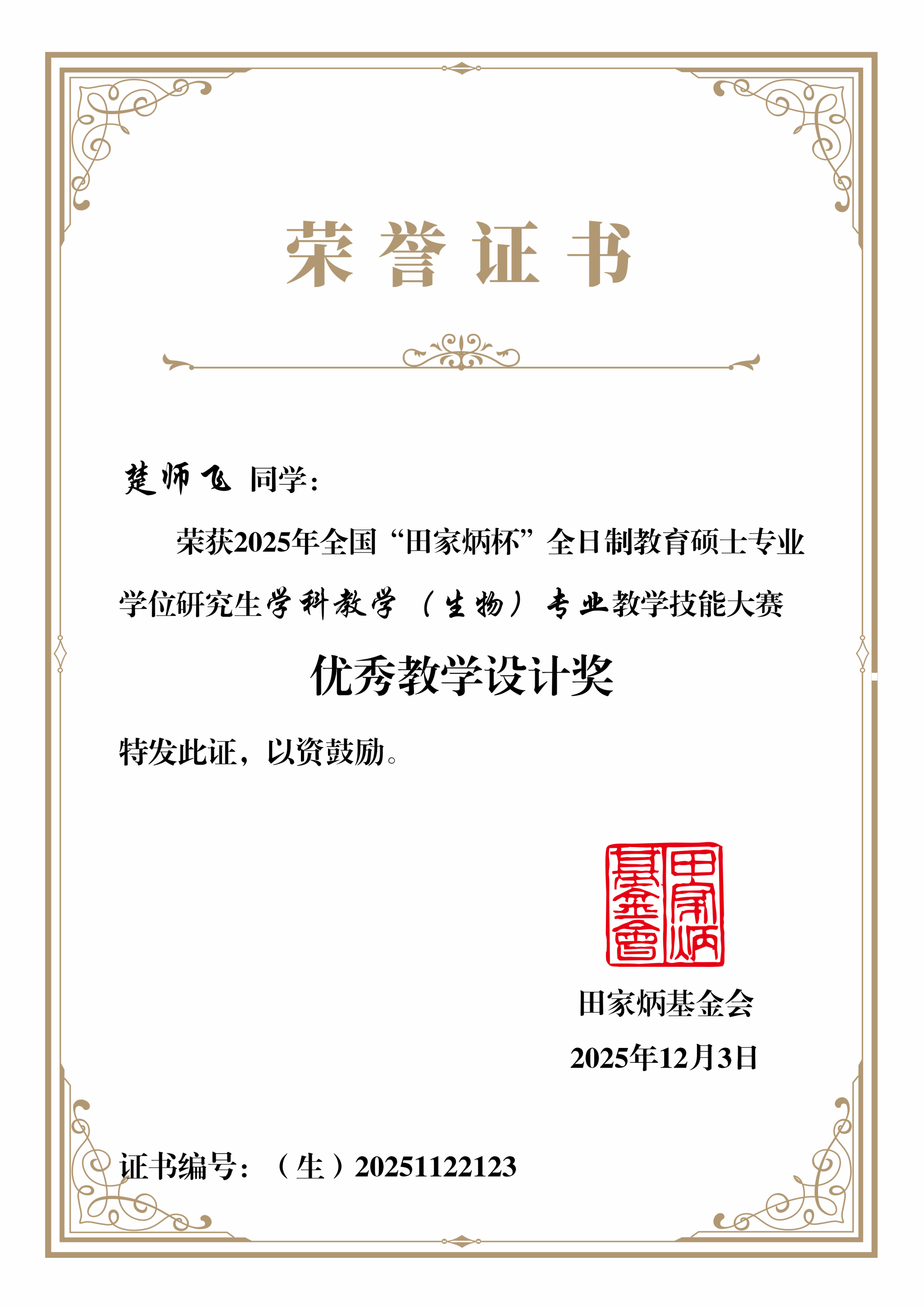 11月21日至23日,2025年全国“田家炳杯”全日制教育硕士专业学位研究生教学技能大赛在南京师范大学成功举办。作为我国教育硕士领域的重要赛事,本次大赛通过教学设计、模拟授课、现场答辩等环节,全面考察参赛选手的教学素养与综合能力。