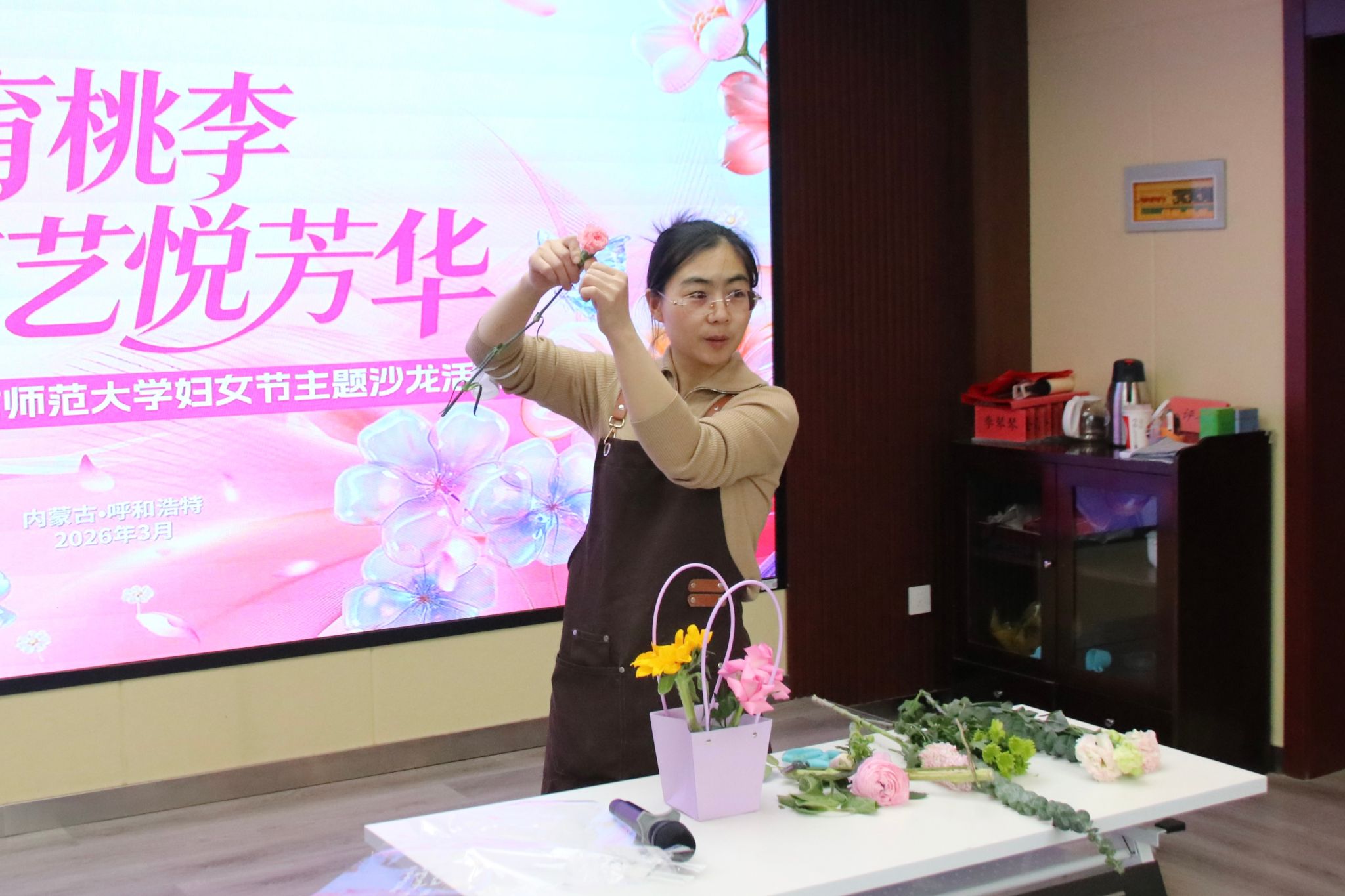在第116个“三八”国际妇女节来临之际,为丰富女教职工精神文化生活,营造温馨和谐的校园氛围,3月4日,qy球友会联合中国银行开展了“匠心育桃李,花艺悦芳华”三八妇女节主题沙龙活动。qy球友会女教职工齐聚一堂,在花香与欢声笑语中共度温馨节日时光。